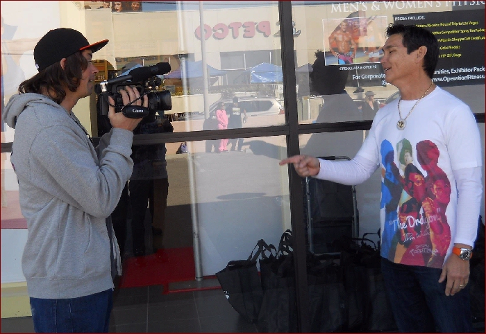 Don is being interviewed by TMZ at Mike Torchia's Operation Fitness event at the Vitamin Shoppe in Los Angeles.