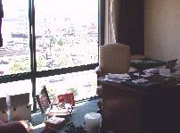 While the others are due to arrive Thursday and Friday, Johnny Davis arrived late last night by plane. Johnny of course was refreshed and ready to roll while I needed a little rest after unloading and carrying the 20 plus boxes to our IKF Radisson Office (Right & Below) filled with Championship Belts, IKF Souvenirs, T-Shirts, Gloves, Shin Pads, Computer Equipment and other event supplies. About 10 trips to the room later, our IKF Radisson Office quickly filled up.