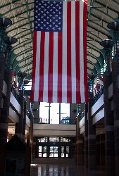 What will impress you enough will be the opening entree (Right) to the RiverCenter Glass, marble and rock are all you will see, and at night time, this place is even more impressive with all the lighting. But as if that's not enough, the lobby with it's massive hanging USA Flag (Left) to welcome this Great USA Championship event will set you in awe. The lobby alone is nearly the size of the entire venue for last year's event.