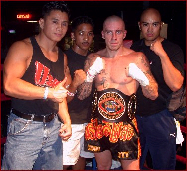 Across the ring from DeNatale will be the pride of Scotland, Duncan Airlie James. James' last fought for the IKF back in St. Helens, England on August 16th, 1998. There he faced Chris Wright of Merseyside, England for the vacant IKF Pro MTR Cruiserweight World Title. In the bout, James lost by a head kick KO at 2:04 of round 2 (At Right, after bout). Wright has not fought for some time and recent word is that he has retired from the ring. Unlike Wright, James has been VERY Busy in the ring and has no plans