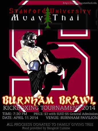 Most likely, No. It's a no answer only because as of this posting, none of those involved (So far) are registered as licensed fighters, trainers or officials with the California State Athletic Commission or the IKF. This past Friday, April 11th, Stanford Muay Thai hosted an Amateur Muay Thai event at Burnham Pavilion on Stanford University called "Burnham Brawl". So far so good... Until someone found out the event was actually scheduled as an Illegal unsanctioned event. According to their Facebook Page, this was Stanford Muay Thai's 8th annual kickbooxing tournament, featuring their own club fighters as well as special presentations and performances. Food was to be provided by Bangkok Cuisine and they were also advertising free beer... There are clips of past "Burnham Brawl's on their