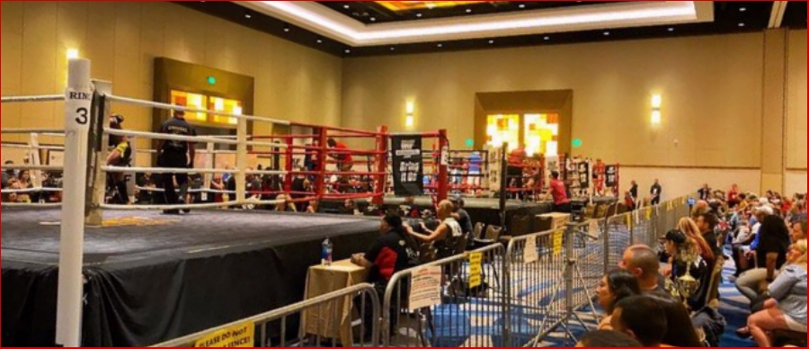boxing ring + a minimum of 10 feet Out to include all event officials at