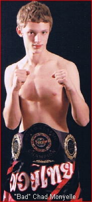 According to his father and trainer, former IKF Pro FCR Bantamweight US Champion Craig "Thumper" Monyelle, Chad is looking to even the record John Greubel of Augusta, Georgia, USA set last year with 6 Tournament Titles. However, Chad's real hope is to set a record of his own as he hopes to be the first Tournament Fighter to win the "Triple Crown" which would be a title in ALL THREE of the Tournament rule Styles. (Full Contact, International and Muay Thai)