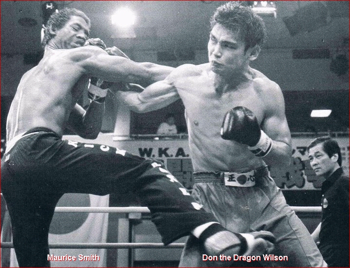 On May 15th, 1999 in Lowell, Massachusetts, USA at 45 years of age, 11 Time Kickboxing WORLD Champion Don "The Dragon" Wilson stepped back into the ring to fight for the vacant IKF Pro FCR Cruiserweight World Title against Dick Kimber for what is still this day, the highest kickboxing purse ever paid, $150,000.00 and some additional training expenses. Kimber swore to everyone that he'd have the fight over before the fifth round. However when the Dragon unloaded on Kimber in round three, Kimber dropped to the mat and referee Dan Stell counted him out on the floor. Kimber never stood during the count and to this date, Kimber never fought again. Having never been challenged for his title, Wilson voluntarily retired it several years later. | ||