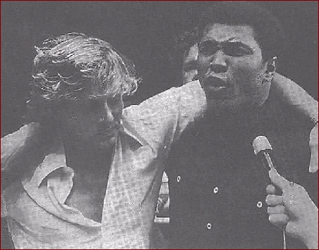 I jumped up, telling everybody we were just playing. Ali stood up next to
