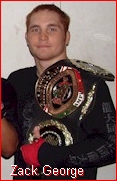 At the 2003 IKF/TKO USA Nationals, some thought Zack George of Watonga, Oklahoma, USA (6-1/3, 136, 5'6", 19, Scott Mincey) had a questionable win for his title against Robert Elledge. Well, Elledge opted to fight on a local card in California Friday night before this event I'm sure he now wished he was here. His fighter no showed leaving him without a fight. Probably good for him because a very different Zack George showed up last night in South Carolina as George looked like his winning multi time World Champion trainer Scott Mincey as he picked apart Chad Morgan of Providence, North Carolina, USA (0-1/0, 135, 5'7", 18, Ronnie Copeland) in way to winning the 2003 IKF North American title by TKO at 1:29 of round 1, by 3 knockdown rule. Look out Robert, George is a changed fighter... And you two are sure to meet again down the line!