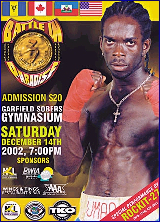 The event was sanctioned by the National Kickboxing League of Barbados (NKL) and the International Kickboxing Federation (IKF) and featured international kickboxers from the United States and host country Barbados. From all reports this was certainly the most exciting kickboxing event ever to be staged on the shores of Barbados. Further IKF sanctioned event are scheduled for April, September and December of 2003. Here are the event results; Bout 1: Carrington (Barbados)