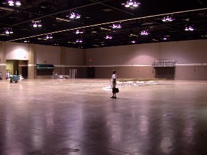 Still no impressed? Then step into the main event room (Right) Last years venue of just over 8,000 square feet in size is dwarfed by the size of the 36,000 square feet RiverCenter facility. In the picture I took today at the right, Johnny Davis is dwarfed himself by the size of the room. 180 feet wide by 180 feet deep. You could fit over 4 of last years rooms inside this one easily.