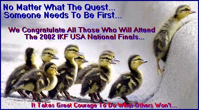 Of course now the question is how many will make the extra step to fill out the Nationals Championships Registration Form found HERE, and truly "WALK THE WALK" at this years 2002 IKF USA National Amateur Championships on August 2nd, 3rd and 4th in Davenport Iowa?
