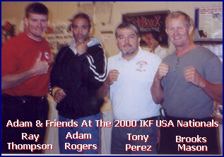 No, this is no April Fools joke.. On March 31st, 2003, IKF Amateur Champion Adam "Elder" Rogers (Right) of Seaside, California, USA announced his retirement from the ring. Rogers has not left the sport though. He's been swamped with running his school (BODY WORX Kickboxing & Martial Arts Academy) and training fighters of his own. This along with raising his children has kept him very busy. Although he still has the fighting spirit in him, he no longer has his trainer and no one to spar with in his area. With such a busy schedule, he has no time to travel to train either. Rogers told us, "I retire with a heavy heart because I know I still have it in me. Perhaps if I get a trainer here near me I can make a come back." Rogers has been a name in the IKF for a long time. At the announcement of his retirement, he still held the IKF Light Middleweight Amateur International Rules California Title. A title he won on May 20th, 2000 in Fairfield, California, USA when he defeated Tony Sanza of Fairfield, California by TKO at 1:03 of the second round. Rogers was ranked number 6 in the IKF Amateur International Rules Rankings as a Light Middleweight with a fight record was 8 wins, 3 loses and 3 wins by KO/TKO. He was trained by another well know and respected name to the IKF and the sport of kickboxing, trainer Rick Noble. Rogers has been teaching martial arts for over 20 years. He holds black belts in African American Shadow Boxing, Tang Soo Do, Tae Kwon Do, and Hapkido. His last "Scheduled" bout was back on December 7th in Roseville, California, USA against against Maurice Hooks of Modesto, California. However a leg injury forced Rogers out of the bout. He won the 2000 IKF/RINGSIDE USA International Rules Light Middleweight Title when he defeated Kurt Leda of Omaha, Nebraska by unanimous decision, 30-26, 30-25, 30-25. In 2001 he fell short of defending his title when he lost in the final to Jorge Hernandez of Aurora, Colorado, USA by unanimous decision, 29-27, 30-26 & 29-26. That same year (2001) Rogers also cornered and trained 4 of his fighters at the same event including 2 Time IKF USA National Champion Narayan Stitt (Right - 2000 & 2001 National Champion) who retired from the ring last year on October 23rd, 2002 to pursue a career in Law Enforcement. Stitt was also the IKF Amateur IR Middleweight California Champion. Although unknown at the time, his bout against Hernandez at the 2001 IKF USA Nationals was Roger's last bout. In November