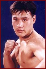 and a pro record of 5-1-1 with 4 KO's. After a search that left them with very few options, the IKF re-informed the promoter of Taghizadeh and asked if they could have either a foreign (Non native American) fighter either living here in USA (Such as Taghizadeh) or any fighter from any of the American Continents. This was accepted by the promoter so the IKF went in search of all potential San Shou fighters in both North and South America. During their search, they were recommended by Scott Sheeley to look into a fighter named Eduardo Fujihira who according to Sheeley was the best possible choice to fight China's number one fighter at the weight needed, Liu Hailong (Above Right). So the IKF requested a full bio on him which reads:
