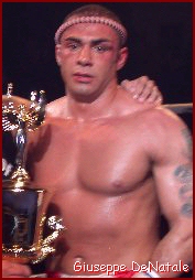 Canada The big fight on the night will be the quest for the IKF Pro MTR World Heavyweight Kickboxing Championship. a five round battle between former IKF Amateur Canadian Heavyweight Champion Giuseppe "The Godfather" DeNatale. DeNatale was also the 2002 K-1 Milwaukee Champion, 2 Time ISKA North American Champion (Winnipeg, Manitoba, Canada) Vs Scotland's Braveheart "The Lion Rampant" Duncan Airlie James. James - www.duncanairliejames.com (30-14-2) is a 6 Time World Kickboxing Champion from Glasgow, Scotland. DeNatale won his IKF Amateur Title on February 10th, 2000, in Winnipeg, Manitoba, Canada by TKO at 1:33 of the 3rd round over Ryan Graham when he landed a head kick on Graham that dropped him. He voluntarily vacated his title in 2000 to turn Pro. On February 9th, 2002 at the K-1 North American qualifier in Milwaukee, Wisconsin, DeNatale brought the legend of Rocky to reality as he came back not once but twice from what looked like sure defeat. In his opening round of the Tournament, DeNatale dropped opponent Mark Miller about a minute into the opening round with a head kick and later exploding with a left - right combination that put Miller down for good at 2:07. In his round 2 bout, a 250 lb. tree stood in the middle of his road to the final named Carter Williams who out-weighed him by 32 lbs (218 - 250) It was David Vs Goliath. As in the story told many times, DeNatale held on to win by the K-1, 2 knockdown rule when he knocked Williams into the ropes and he slid down to a knee in round 2. In the final, DeNatale met up with Kurt Hasley. After an exciting first round, DeNatale's second round combinations proved to be too much for Hasley as he couldn't keep his feet. David had beaten Goliath not once, but twice in one night as Referee Al Wichers stopped it at 2:15 of the second round! At K-1 USA in Las Vegas later that year in May, DeNatale became the victim of the silly 2 knockdown K-1 rule. Although unhurt, this time he was on the losing end as Michael McDonald defeated him by Referee stoppage due to the 2 knockdown rule. McDonald went on to win the Tournament that year. He returned to Las Vegas in May of 2003 where he lost his opening round bout to Maurice Smith by unanimous decision, 30-27.5, 30-28, 29.5-28.5. This was the same year Carter Williams took the K-1 Trophy home. Here is a list of DeNatale's accomplishments in the ring: