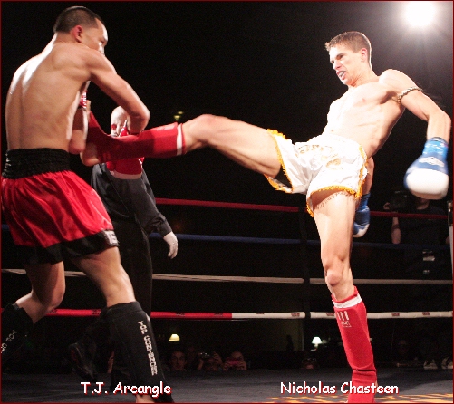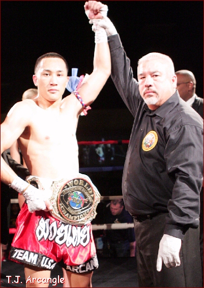 the IKF upset?" Kickboxing and Muay Thai was moving forward STRONG in 2004 and 2005, and we were all just steps from the most successful time of the sport. Then, a few let their egos get in the way, their pocketbooks and we all broke apart. Everyone wanted their own Sanctioning bodies, their own tournaments, their own Champions... We all lost sight of the big picture and we all paid the price... Within a year, MMA EXPLODED onto the scene as no other fight sport had. During this time, our ISCF MMA division Exploded as well. The IKF was still busy, but promoters we had built into icons of the sport decided they were so big, they didn't need IKF, as they believed they were bigger than everyone. There was no more TEAM in our sport. Kickboxing and Muay Thai was breaking apart and as the Stand-up Sports were fighting for position, MMA surpassed us without even a challenge... ALL of us allowed this to happen.... However, the question now is, how many of us can come back together and work to build this sport again? AK Promotions has been committed, as have some other promotions. However, we all need to work hard like AK Promotions has. We ALL as a whole need to bring our sport to a different level. We ALL need true, legit competition to make us better... WE ALL NEED DISCIPLINE! Those of you who are weak in your efforts, you will be offended by this article... However, those of you who are True Champions inside, TRUE Promoters inside, YOU will all realize that we all need to "Step UP!" If we stay where we are today, we will never get where we all want to be... The only question now is, WHO will really Step up?! This past weekends AK Promotions event STEPPED UP! AK Promotions wanted to give multi time junior Champion Katrina Nahe a TRUE Challenge for a TRUE World title. So, AK brought in a fighter that the IKF determined was the BEST Challenge for Nahe... Tisha Balentien who came in all the way from Almere, Holland. Balentien was no beginner. With a fight record of 34-5-1/11, she was ready to challenge Nahe for the vacant IKF Junior Girls Amateur Modified Muay Thai Bantamweight World Title... note... This was a "JUNIOR" Title! There was loads of hype prior to this bout and by the time these two took center stage, all that hype and smack talkin proved legit as both brought their A GAME to those Fight Fans in attendance. Although Nahe had far less experience record wise, her background in IKF Point Kickboxing proved helpful in her timing as well as targeting. While Nahe was scoring in the outside game, Balentien was racking up points while in the clinch with her knees. The two came out explosive in every round and each focused on their strong points. Balentien continued to win the inside knee battle, but it was Nahe who was winning the outside fight. By the time the fight ended, many thought it could go either way. Us at Ringside thought there would only be a point difference between the two. However, when the judges cards were tallied, only one judge saw it close like us. Judge Marshall Walker had it 48-47 while judges Ray Belowitz and Susan Thomas-Gitlin both had it 49-46. The winner, by unanimous decision was Katrina Nahe. Prior to the Tisha Balentien - Katrina Nahe Title bout, Alec Gonzales of California (7-1) and Travis Clay of Arizona (5-2) met up for the vacant IKF Amateur "Full" Muay Thai Rules Western United States Lightweight Title. This was by far one of the most exciting bouts of the night. Gonzales and Clay went hard and fast for all 5 rounds and the scores alone do not express how close these two were. in the end, Judge Martin Sammon and Susan Thomas-Gitlin had it 49-46 while Judge Marshall Walker had it 48-47, all 3 for the new Champion Alec Gonzales by unanimous decision. The nights main event was a Title Defense. T.J. Arcangle of San Francisco, California (12-1) has won several IKF titles. He had won the IKF Amateur Modified Muay Thai Light Welterweight World Title on October 8th, 2011 on another AK Promotions event in this very same venue in Oakland, California, USA. In the bout, he faced top contender John Hamm of Calgary, Alberta, Canada (22-12/9). After 5 rounds of some of the best fighting techniques we had ever seen Arcangle produce he defeated Hamm by unanimous decision, 50-44, 49-45 and 49-45. For his defense, he would need to take on another top contender, Nicholas Chasteen of Tempe Arizona (16-3/6) Well before the bell rang, Arcangle knew he had his work cut out for him as his 141 pound contender also had a good 3 inches of height to his advantage. Chasteen stepped up to the scales at 6'1" to Arcangle's 5'8". Seeing this we wondered how Arcangle's game plan would battle the taller Chasteen. From the opening bell, we must say that it often appeared as though Chasteen was the aggressor. Although lean and tall, it was clear that his slender physic was packed with plenty of explosive muscle. However, it also seemed that although Chasteen was agressive, Arcangle was blocking most of his shots and getting off some effective counters. Throughout all 5 rounds, Arcangle never appeared to be the aggressor. He simply remained patient and waited for Chasteen to attack. Chasteen seemed to always be the one to engage, but once he did, Arcangle would slip, move and counter. It was a well planned strategy against the taller Chasteen that seemed to be working. In the end, two of the three judges agrees as Judge Susan Thomas-Gitlin and Marshall Walker scored it 49-46 Arcangle and Judge Ray Belowitz scored it 48-47 Chasteen. Arcangle keeps his title on this night, but like the Balentien - Nahe title bout, we wouldn't mind seeing these two go toe to toe again. Here is the nights full round-up and bout stats.