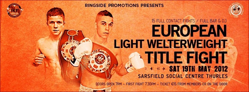 WHO: Ringside PromotionsIKF Promoter Pat John Mc Cool took a big gamble on Saturday evening when he promoted a European Title fight in the Sarsfields GAA centre, Thurles. He was competing with not just the Champions League but also the Heineken Cup. The Thurles fight fans got behind him however and although he didn't sell out, he still managed to have a very respectable crowd of enthusiastic supporters who created an excellent athmosphere for their home fighters.