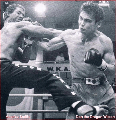 BACK STORY 1... (**) Wilson was flown to Tokyo, Japan and had a signed contract with the WKA to defend his WKA "Light Heavyweight" title at 175 lbs he had won in October of 1980. This was to be Wilson's 7th defense of this title. However, for unknown reasons, Smith came in at 190 lbs. apparently thinking he was defending "His" WKA World title at 190 lbs. The Japanese promoters were as shocked as Wilson was about Smith's weight and feared the bout would be cancelled. However Wilson, always looking out for the greater good of the sport and a desire to save the show for the promoters agreed to move forward with the bout. Keep in mind, there was no athletic commission or country fight sport regulatory body to regulate the weight spread between the fighters weight {which was a max spread of 7 lbs - using the weight of the lightest fighter} Only Howard Hanson of the WKA who ignored the 15lb + weight spread between the fighters in exchange for a good fight. When all was said and done Wilson defeated Smith by decision and won the WKA Cruiserweight World Title. This was a Leg Kick Bout - Like the IKF International Rule Style - WKA just called it Full Contact Rules at the time since this was when some of the martial arts tournaments were still semi contact vs "Full" Contact fighting in a boxing ring. Directly after the bout, Wilson vacated the title because he had no plan of ever fighting at 190 lbs. again since he could not make that weight. His fight weight at the time was around 175-180. BACK STORY 2... Realizing the two were not at the same weight, then WKA President Howard Hanson made up a new weightclass so the two could still fight, which was called the WKA Super Light Heavyweight World Title which was a heavier weightclass that Alexio could make. { Like the Smith bout, this was a Leg Kick bout - like the IKF International Rule Style} Still, like in the Smith bout, at the lowest weight of 173, the maximum weight spread for these two should have been 7 lbs. However instead, with Wilson at 173 and Alexio at 182, the spread was now 9 lbs. Keep in mind there was no state athletic commission in Florida at the time to oversee fighter weight spreads, only WKA Sanctioning body President Howard Hanson. BACK STORY 3...