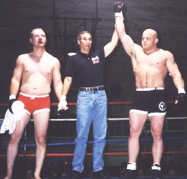It looks like the beginning of something big for Milwaukee's IKF Pro MuayThai Champion Richard Kostuck (Right). His new gym (Triton Kickboxing & Muay Thai) hasn't even been opened a month and he's already got a stable of Champion Fighters working with him as a Team along with many potential champions in training. IKF Amateur Champions Brian "Badboy" Fowler and Jim "Knock Em Down" Downey have joined up with Kostuck along with several other Milwaukee MuayThai kickboxers that include Josh and Joe Tarman, Joey Corro, Brad Fowler and Rachael Thomas just to name a few at his new Triton Kickboxing & Muay Thai Gym in Milwaukee, Wisconsin, USA. Fowler became the 1999 IKF/RINGSIDE National Amateur MuayThai Light Heavyweight Champion on September 5th, 1999, when he defeated Ben Lankow of Camp Pendleton California by unanimous decision, 30-27, 30-27, 30-27. Downey also won his title at the 1999 IKF/RINGSIDE National Amateur Championships on September 3rd, 1999 when he defeated Matt Kenney of Omaha Nebraska by TKO at break of round 1 & 2 when Kenney choose not to answer the bell for the 2nd round. He won the National Amateur MuayThai Super Welterweight Title. Fighting as a pro now, Downey is 1-1 with 1 KO. His amateur record was 11-1 with 5 KOs. Still fighting as an amateur, Fowler's record is 5-3-1 with 2 KO's. Triton Kickboxing & Muay Thai is located with Adrian Serrano's (NHB Fighter) gym at 4701 West Mill Road in Milwaukee, Wisconsin, USA. The phone number is (414) 385-0491 or you can contact Kostuck by e-mail at rkostuck@hotmail.com |