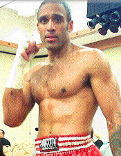 trainer Benny Voyles, preparing for combat, her hard body evidence of
