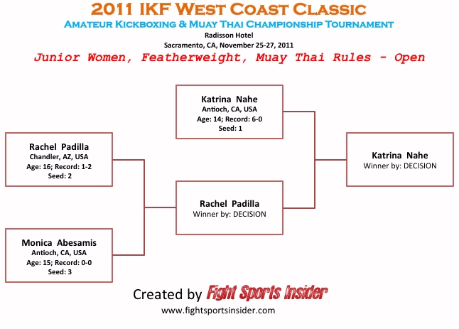 - Rachel Padilla defeated Monica Abesamis, Antioch,