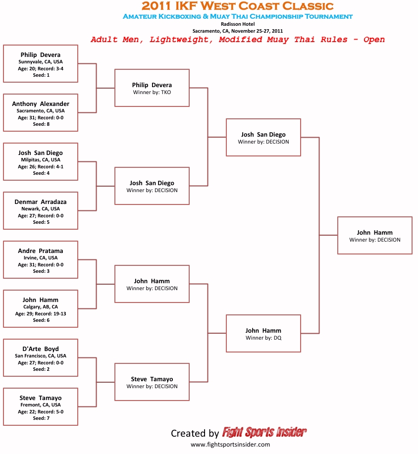 - Saxon Vaughan defeated Mark Climaco Fremont, California,